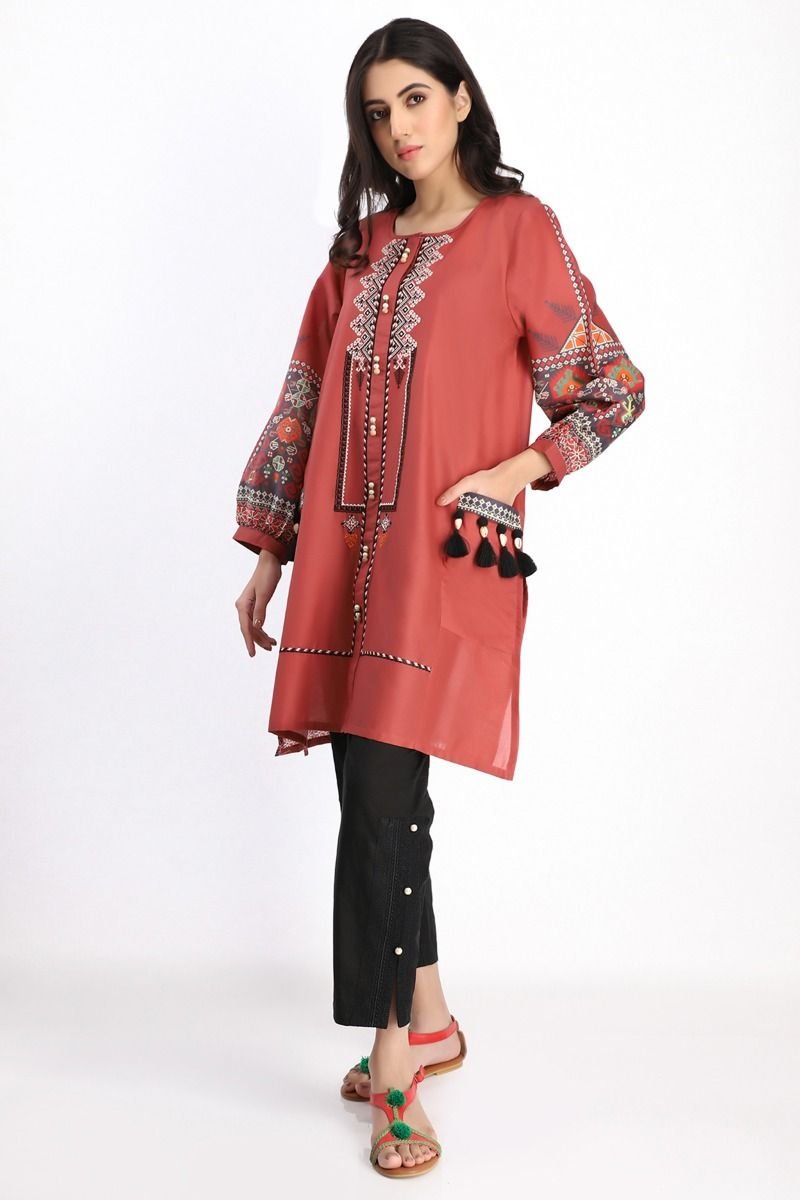 Khaadi’s versatile ready-to-wear kurtas collection 2023 for this summer has the new embroidered and printed kurta paired with dupattas and pants.