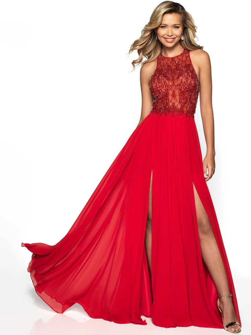 High Neck chiffon Flair Prom Dress: