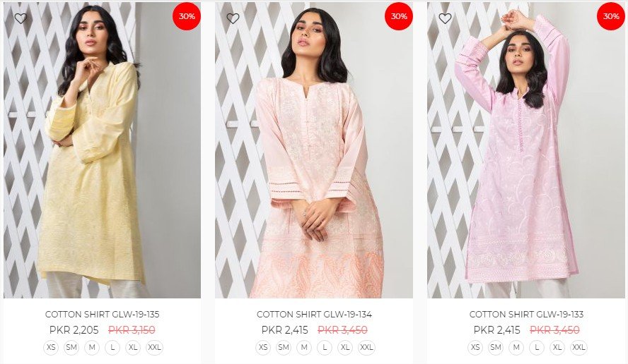 The kurta price range starts from 2,145 to 3,220 in PKR.