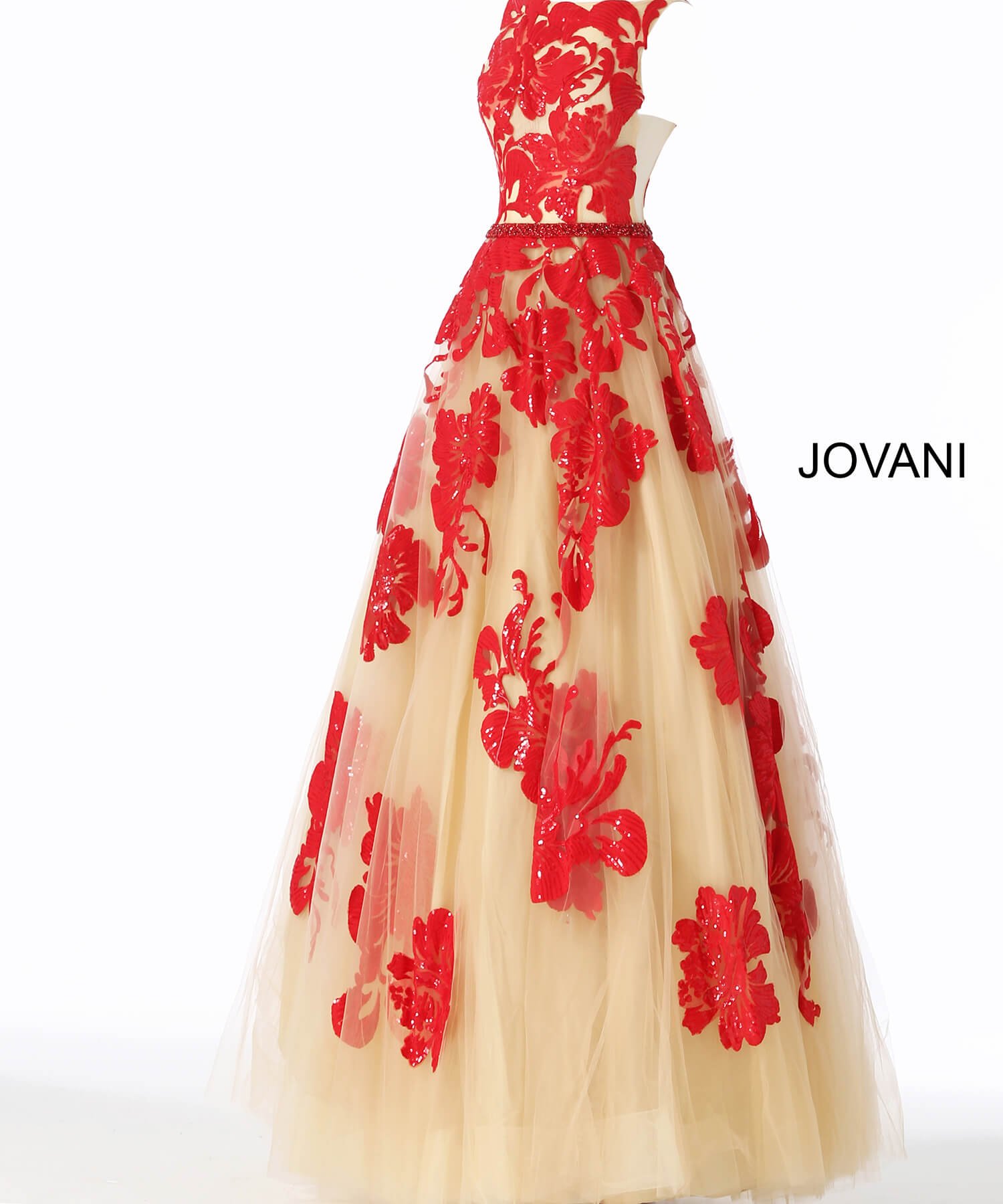 Red Color Halter Neck Embellished Belt Gown Jovani Red Carpet dress: