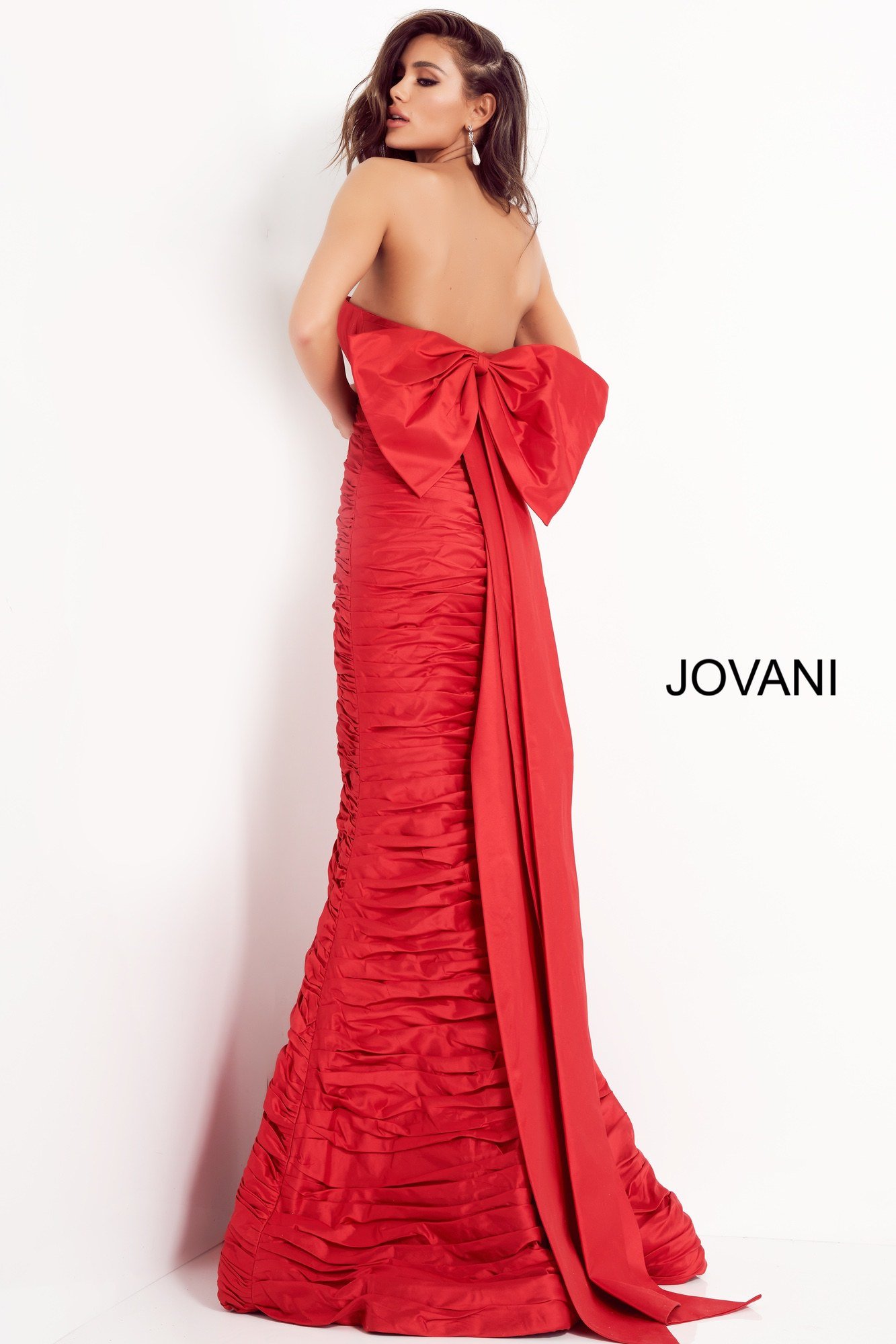 Jovani Red Color Strapless Pleated Red Carpet Gown Dress: