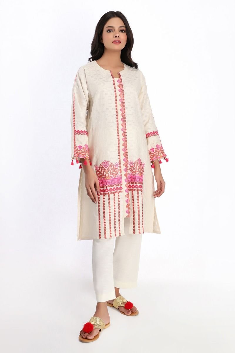 Khaadi’s versatile ready-to-wear kurtas collection 2023 for this summer has the new embroidered and printed kurta paired with dupattas and pants.